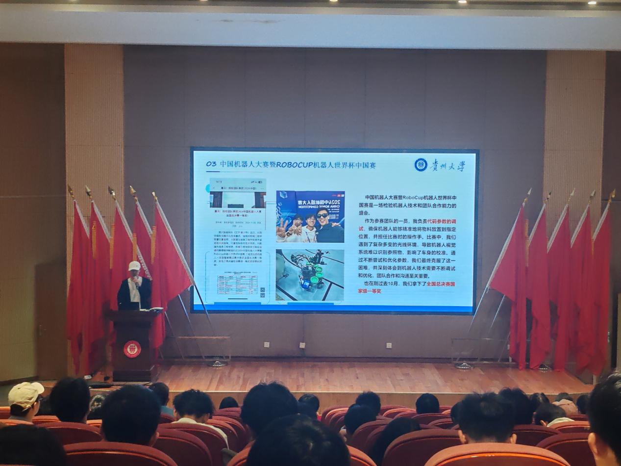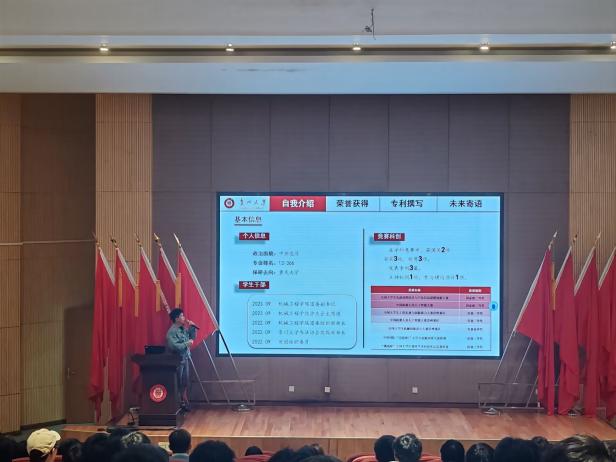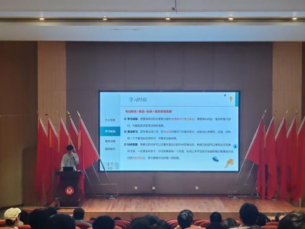 榜樣領(lǐng)航,傳遞奮進(jìn)力量經(jīng)驗(yàn)分享環(huán)節(jié),唐雍、俞天鑫、杜立杰、王占坤、米小紅5名國家獎學(xué)金獲得者依次上臺,圍繞學(xué)業(yè)規(guī)劃、科研創(chuàng)新、競賽經(jīng)驗(yàn)、時間管理、社會實(shí)踐等方面分享有關(guān)經(jīng)驗(yàn)與感悟。他們講述了自身在專業(yè)學(xué)習(xí)中攻克難題的經(jīng)歷,鼓勵同學(xué)們主動探索、勇于嘗試,現(xiàn)場同學(xué)認(rèn)真聆聽,紛紛表示收獲頗豐。