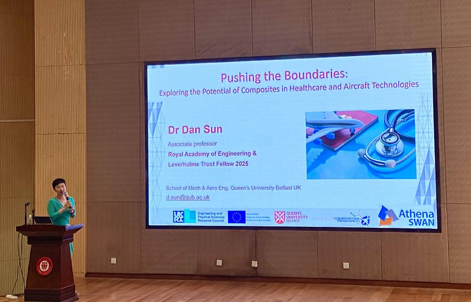 孫丹副教授聚焦先進(jìn)復(fù)合材料的前沿應(yīng)用。在醫(yī)療方面,她開發(fā)的智能復(fù)合植入材料不僅能替代受損骨骼,更能實(shí)現(xiàn)精準(zhǔn)藥物釋放和可控殺菌,為復(fù)雜骨病治療提供全新解決方案;在航空領(lǐng)域,其團(tuán)隊(duì)針對新一代可回收飛機(jī)材料,創(chuàng)新性地優(yōu)化了加工工藝,顯著提升制造效率與環(huán)保性能。兩項(xiàng)研究均體現(xiàn)了復(fù)合材料技術(shù)對產(chǎn)業(yè)升級(jí)和人類健康的積極推動(dòng)作用。