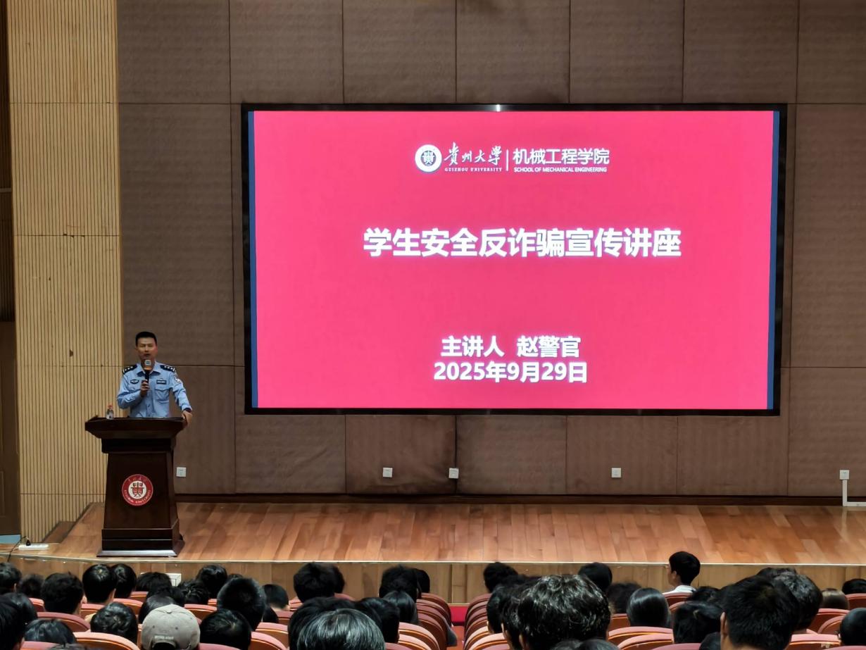 為提升機(jī)械學(xué)子的網(wǎng)絡(luò)安全意識(shí),提升反詐能力,營(yíng)造安全穩(wěn)定的校園環(huán)境,2025年9月29日晚,機(jī)械工程學(xué)院邀請(qǐng)松山派出所副所長(zhǎng)趙普林警官開展新生反詐宣講大會(huì),大會(huì)由學(xué)生科輔導(dǎo)員周士力主持,2025級(jí)全體新生參會(huì)。