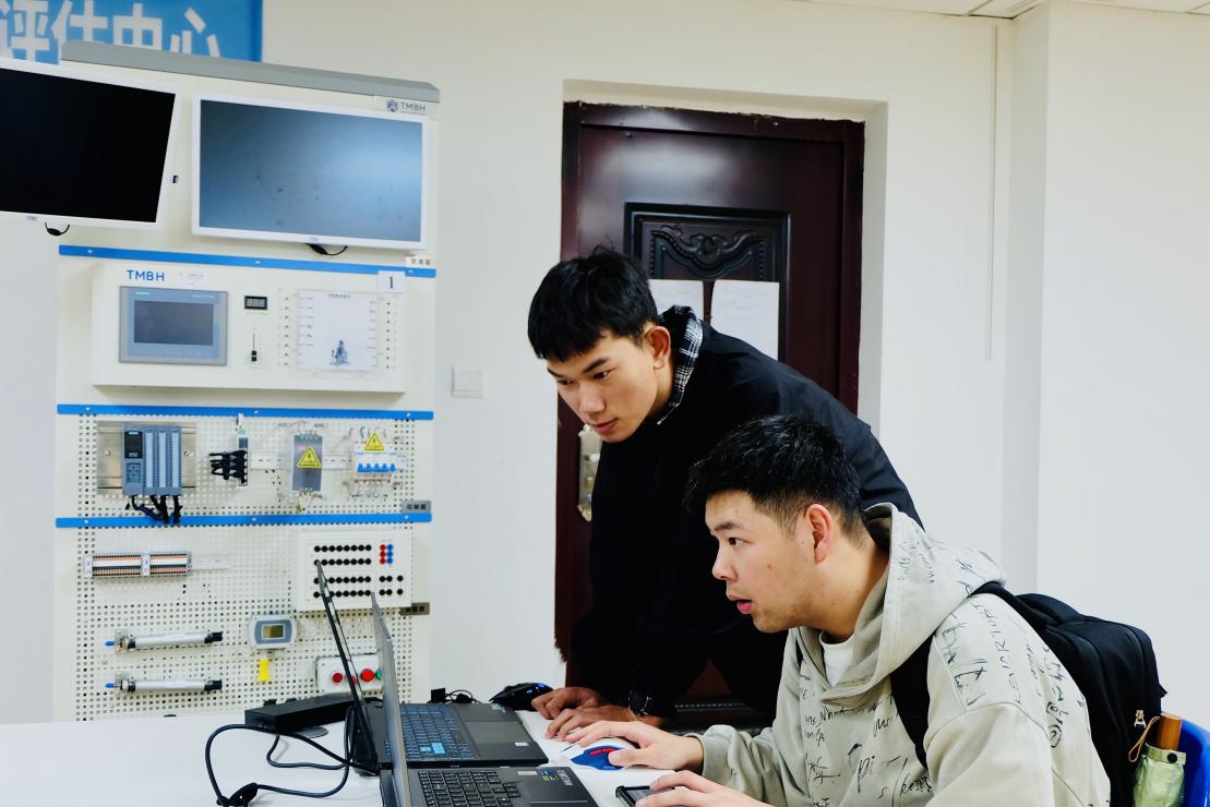 實踐環(huán)節(jié),鄭智帶領(lǐng)同學們進行軟件模擬操作、設備調(diào)試練習,針對編程邏輯、硬件銜接等難點進行一對一答疑,還組織小組協(xié)作任務,讓同學們在實操中鞏固理論知識。