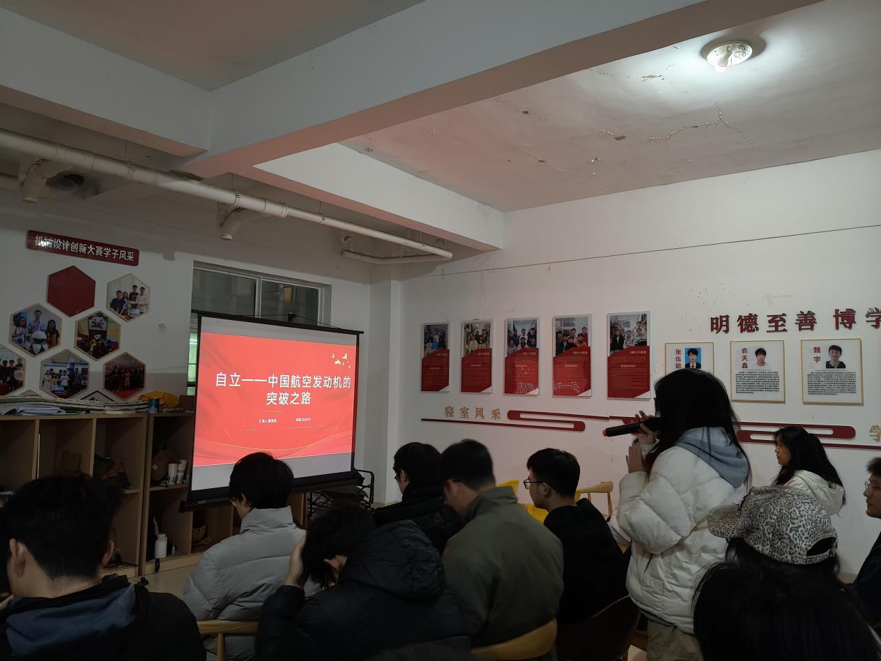 活動(dòng)第一環(huán)節(jié)由預(yù)備黨員董澤圣主講第二期工業(yè)講堂,以《自立——中國航空發(fā)動(dòng)機(jī)的突破之路》為題,從中國航空發(fā)動(dòng)機(jī)產(chǎn)業(yè)的發(fā)展歷程入手,剖析在技術(shù)封鎖背景下,我國科研工作者攻堅(jiān)克難、自主創(chuàng)新的奮斗故事,闡述航空發(fā)動(dòng)機(jī)領(lǐng)域?qū)崿F(xiàn)關(guān)鍵突破的技術(shù)路徑與戰(zhàn)略意義。宣講內(nèi)容既有專業(yè)知識(shí)解讀,又有家國情懷的生動(dòng)傳遞,讓在場學(xué)生深刻感受到“自立自強(qiáng)”對于國家科技發(fā)展的重要性,進(jìn)一步激發(fā)了學(xué)生深耕專業(yè)、報(bào)效祖國的熱情。