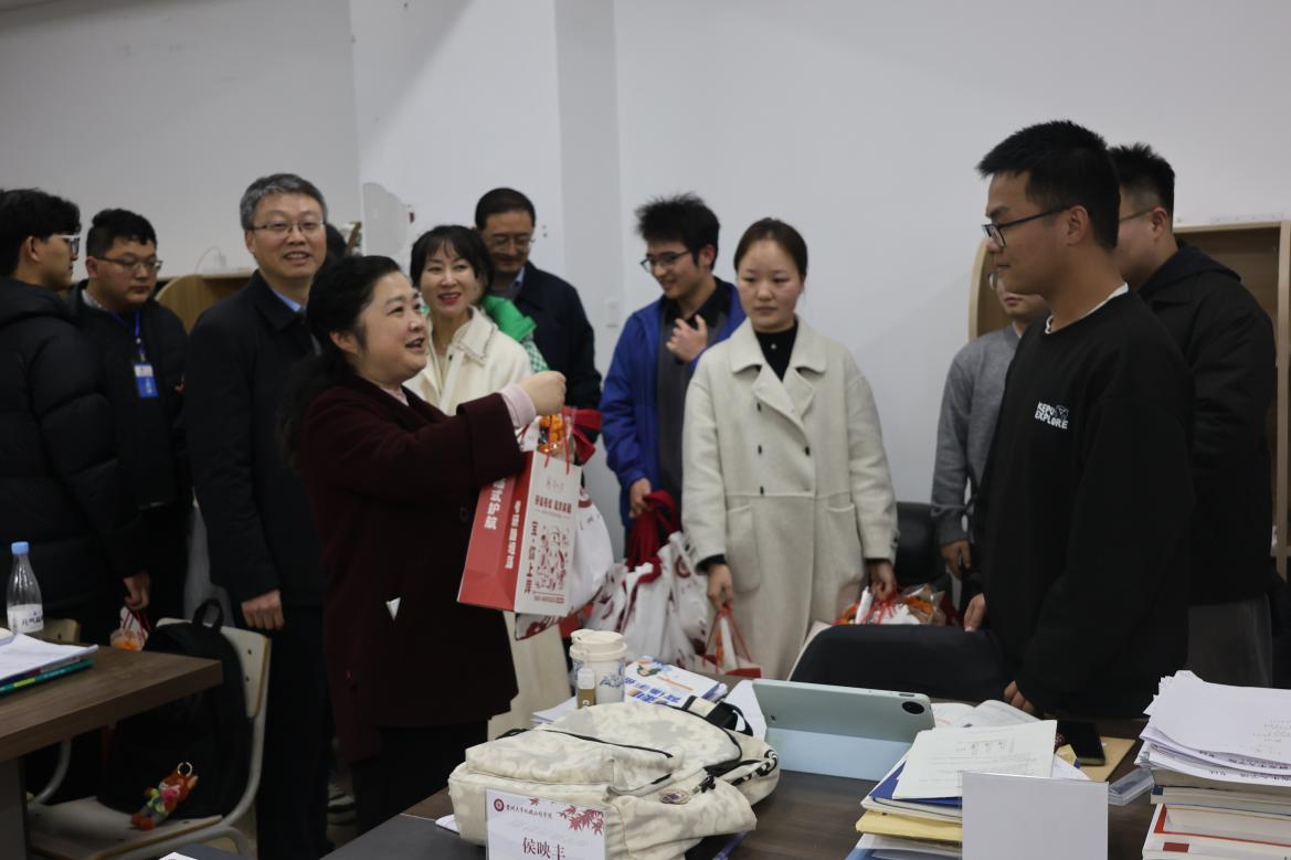時值考研沖刺關(guān)鍵階段,自習(xí)室內(nèi)學(xué)習(xí)氛圍濃厚。校領(lǐng)導(dǎo)一行輕聲走入,親切問候正在埋頭復(fù)習(xí)的同學(xué)們。楊未、向嵩等領(lǐng)導(dǎo)與老師們一同將精心準(zhǔn)備的“考研暖心包”遞到學(xué)生手中。暖心包內(nèi)配有暖手寶、考研文具、護眼貼等實用物品,寄托著學(xué)校對學(xué)生的細(xì)致關(guān)懷。同學(xué)們接過禮物,向領(lǐng)導(dǎo)老師表示感謝,現(xiàn)場氣氛溫馨。