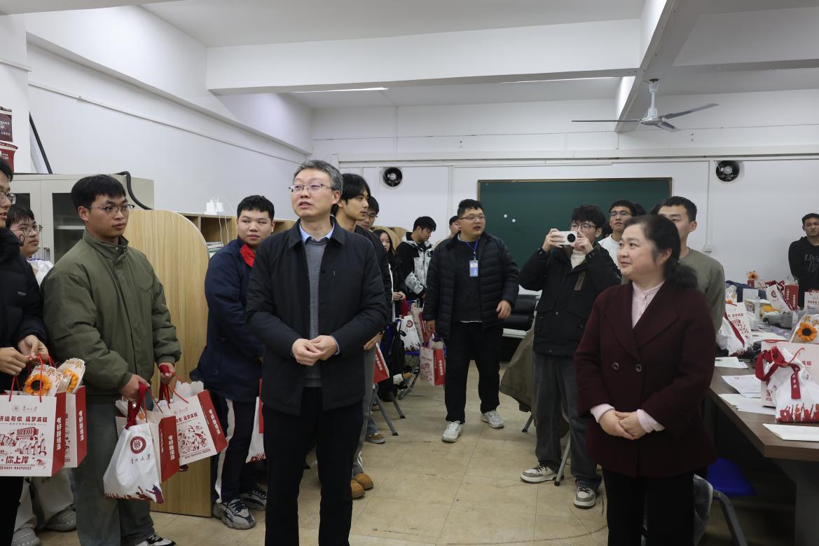 12月9日下午,校黨委書記楊未、副校長向嵩、學(xué)生處副處長崔永霞一行赴機械工程學(xué)院,在學(xué)院領(lǐng)導(dǎo)班子陪同下,深入學(xué)生自習(xí)室看望慰問正在緊張備考的考研學(xué)生,并發(fā)放“考研暖心包”,為學(xué)子們加油鼓勁。