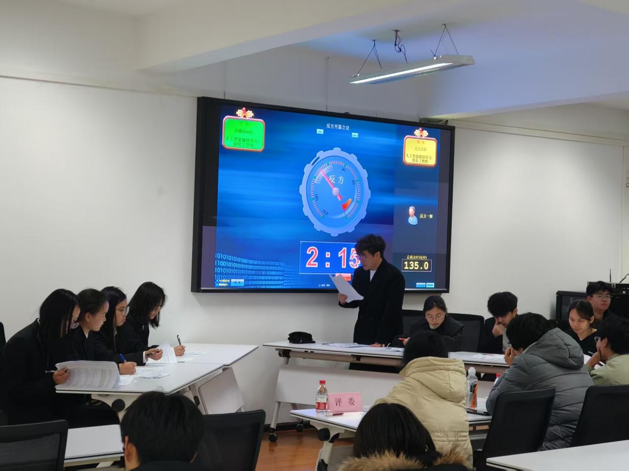 辯論過程中,正方辯手立足人工智能輔助學(xué)習(xí)的高效性、個性化等優(yōu)勢,提出人工智能能夠精準(zhǔn)匹配學(xué)習(xí)需求、拓寬知識獲取渠道,為學(xué)風(fēng)深化提供技術(shù)支撐;反方辯手則從學(xué)習(xí)主動性培養(yǎng)、思維獨立性塑造等角度出發(fā),論證人工智能輔助可能導(dǎo)致的依賴問題,強調(diào)學(xué)風(fēng)深化更需依托自主探索與深度思考。雙方引經(jīng)據(jù)典、攻防有序,現(xiàn)場氣氛熱烈,掌聲不斷。