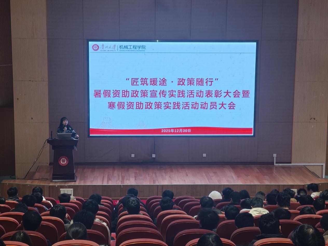 為深化資助育人成效,推動國家資助政策深入人心,20251230日中午,機(jī)械工程學(xué)院組織召開2025-2026學(xué)年暑假資助政策宣講實(shí)踐活動總結(jié)表彰暨寒假實(shí)踐活動動員大會。黨委副書記廖燁出席會議并講話,學(xué)生科輔導(dǎo)員楊朵主持大會受助本科生及黨員學(xué)生參會。